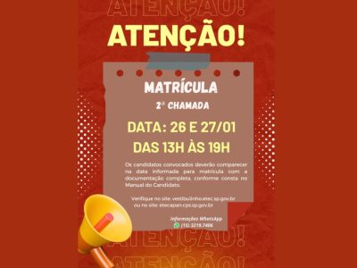 SIPAT – Semana Interna de Prevenção de Acidentes Aconteceu na semana de 15 a 18 de abril de 2024 a SIPAT 2024 da Etec APan com alunos, funcionários e professores da unidade. No dia 15 […]